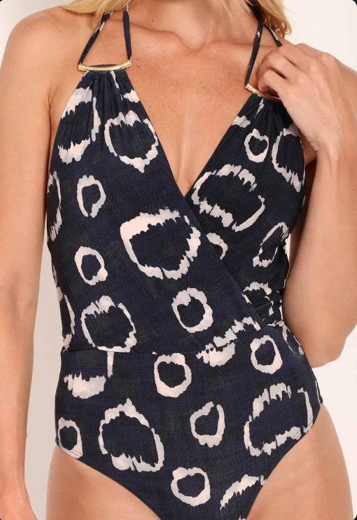 El estampado abstracto añade sofisticación y lo convierte en una pieza versátil para cualquier destino de verano.